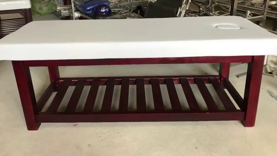 - Giường gỗ spa làm bằng gỗ tràm được thiết kế chắc chắn và lắp ráp đơn giản thuận tiện cho việc vận chuyển đi xa.